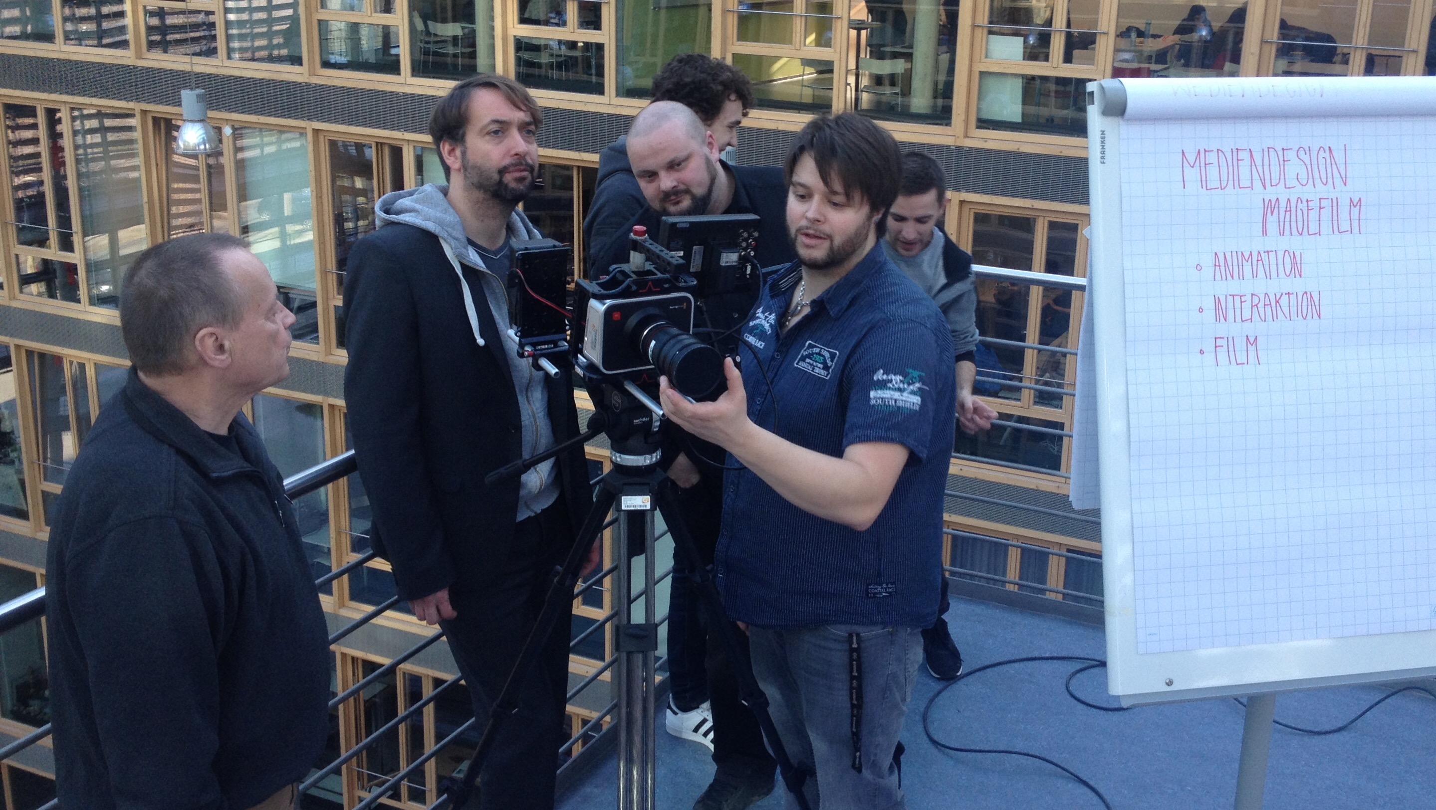 Am 10. Dezember begannen die Dreharbeiten für den neuen Imagefilm des Studiengangs Mediendesign. Im Rahmen eines Entwurfsprojekts mit dem Schwerpunkt Film, entwickelten die Studenten des dritten Semesters unter der Leitung von Nils Loof ein Konzept um den Studiengang in seiner Gänze zu präsentieren.