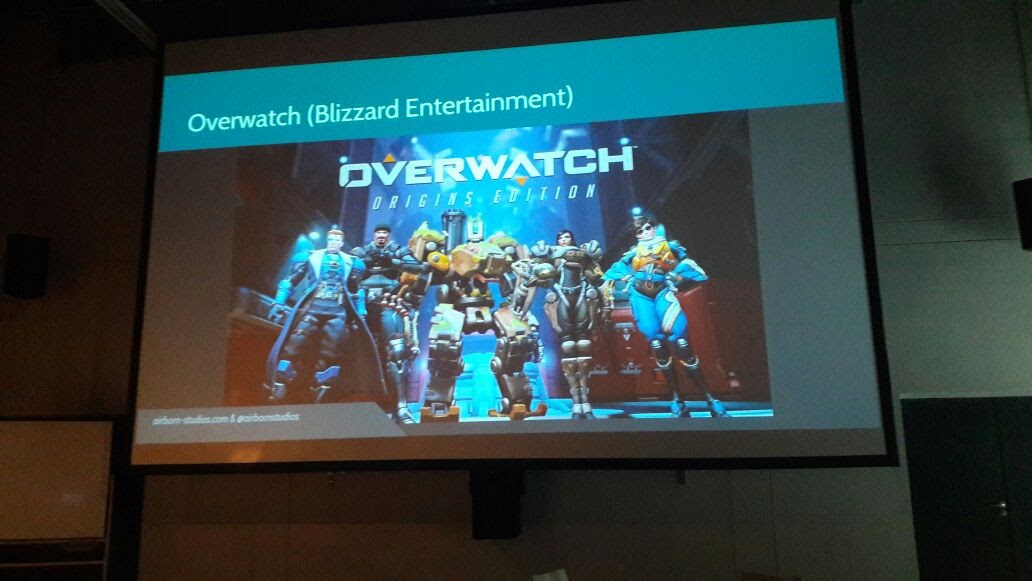 Für viele Studenten war der Vortrag von den Airborn Studios ein Highlight. Johannes Figlhuber, Simon Kopp, Joao Sapiro und Steffen Unger erzählten von ihrer Arbeit an bekannten Game – Titeln wie &Ori and The Blind Forest& und &Overwatch&. Neben den Herausforderungen einer Internationalen Grafikproduktion beschrieben die Vertreter des Berliner Studios ihre Techniken und Herangehensweisen beim Character und Level Design.