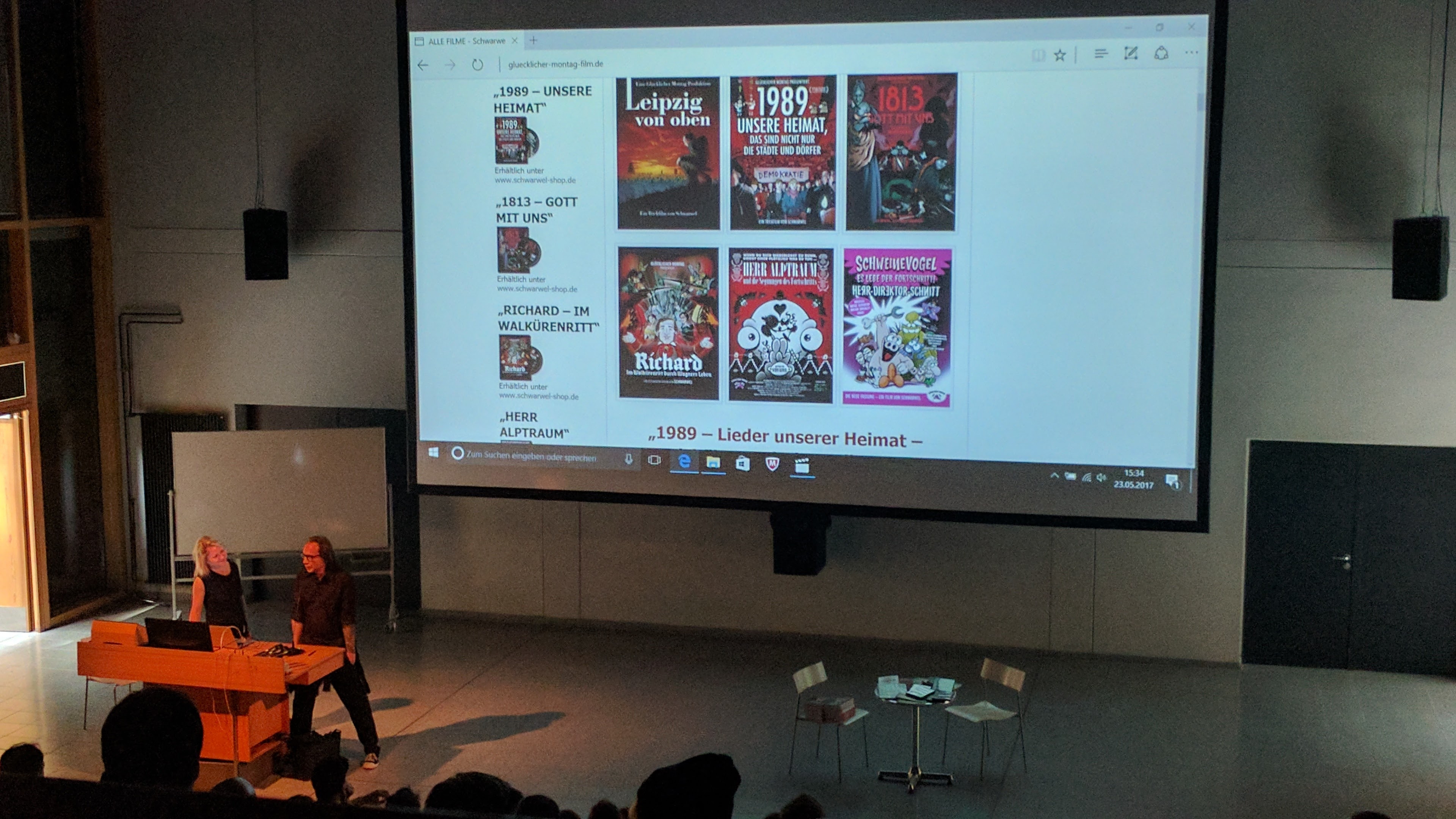 Produktionsleiterin Sandra Strauß und Comiczeichner Schwarwel vom Studio &Glücklicher Montag& widmeten sich dem 2D-Animationsbereich und schilderten den Ablauf einer Trickfilmproduktion von den ersten Ideen bis zur Ausstrahlung.