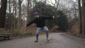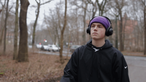 Was tun, wenn die Kopfhörerbatterie schlapp macht? Unser Protagonist muss nun mit Hilfe der Umgebung seine eigene Musik erzeugen. Es ging uns darum, zu zeigen, wie viel Töne in der Natur tatsächlich zu hören und zu finden sind. Die Töne für das Sounddesign haben wir im Stadtwald Eilenriede aufgenommen und zu einem Lied zusammengefügt. Diese Idee haben wir mit einer Tanzchoreografie umgesetzt.